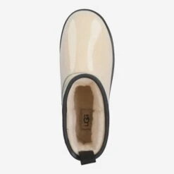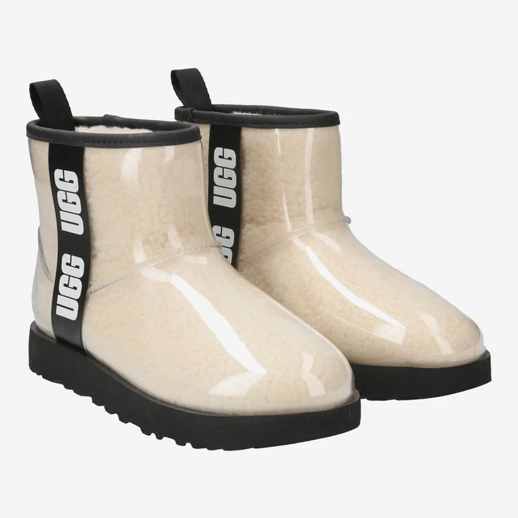 Something new, different and unusual for the fall / winter like? This stylish warm lining boot from UGG is a very special eye-catcher. The transparent rubber upper allows you to see the inside of the shoe : a single bed of clouds. The wool allows you to walk always fluffy and warm, whatever the outside temperature. This boot is therefore, thanks to the waterproof upper, weatherproof up to -20 ° C! The side black stripe with logo print, as well as the sole and upper edge give this model a fantastic modern look! Ready to walk on clouds? (psst : most cozy without socks).