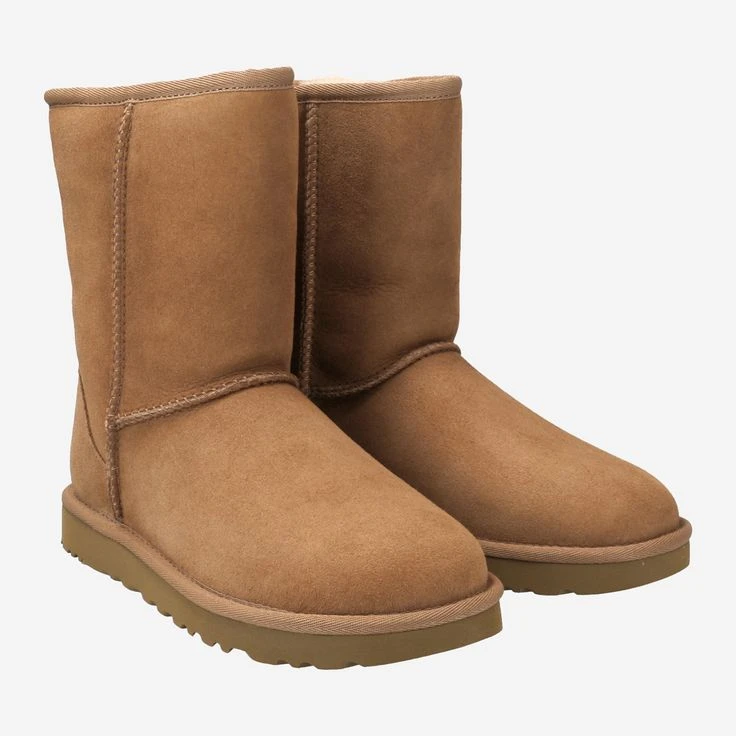 With these iconic UGG Boots you will enjoy warm feet on cold days! “Classic Short II” is fluffy soft by an inner lining of 100% fur (sheepskin), and beds your foot like on clouds! The honey-brown suede is as versatile as your wardrobe – and rounds off any look skillfully!