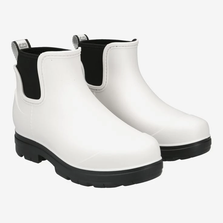 - Removable footbed, suitable for insoles, entry loop, logo embossing, 100% waterproof, injection molded one-piece upper construction, rubber upper, neoprene cuff, 10 mm thick curly UGGplush™ lining (60% upcycled wool, 40% TENCEL™ Lyocell), EVA footbed, ideal for: Light or medium rain