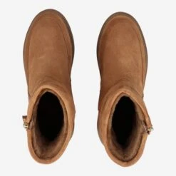 - Zipper, decorative stitching, logo application, platform sole, warm lining