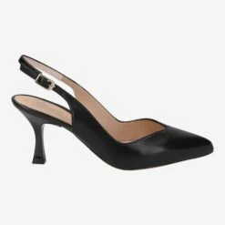 - Queenie heel, stretch insert at metal closure, logo embossing