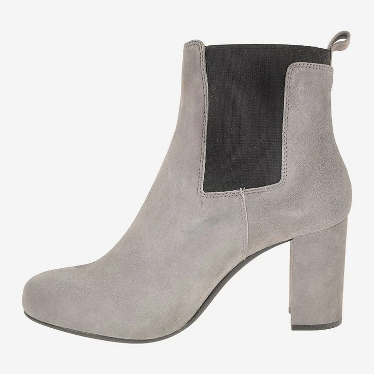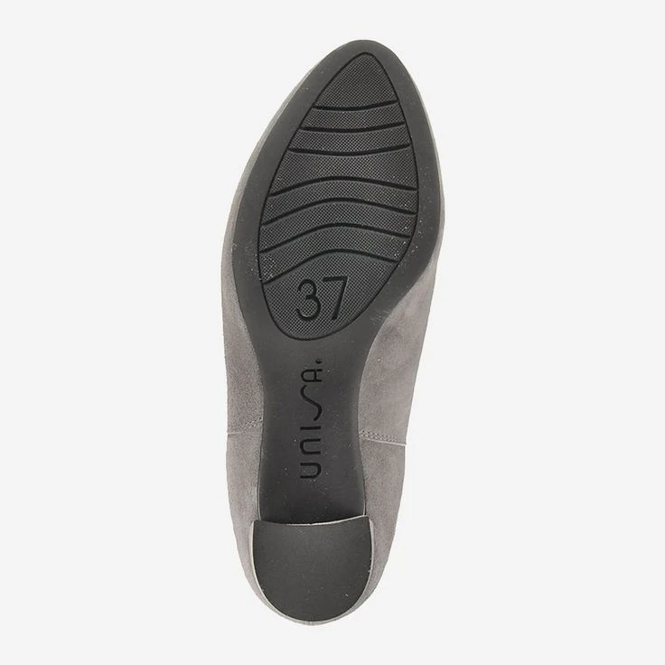 Elegant charm exudes this gray suede ankle boot from Unisa. A small incorporated platform and large stretch inserts were used and provide the extra comfort when worn