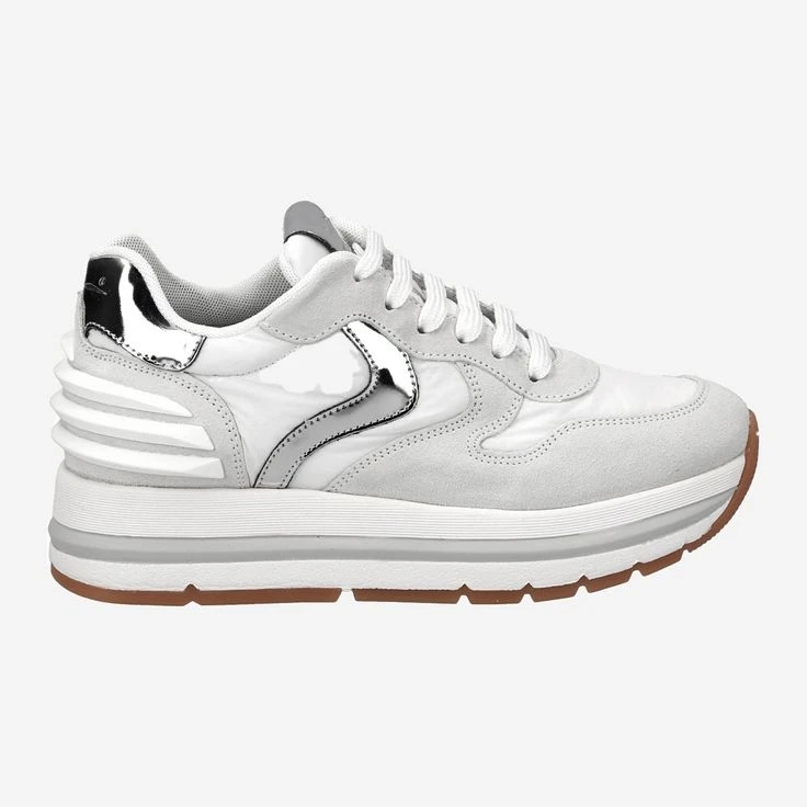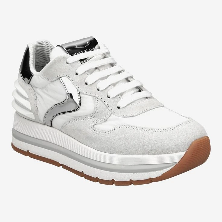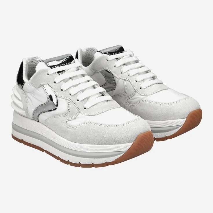 Plateau – reflections – street style! The luxury manufacture Voile Blanche sets the trend with MARAN POWER. It still remains extremely casual and just as detailed! A mix of leather and textile enlivens the look, which is three-dimensionally pimped by futuristic 3D heel applications. Mirrored details uniquely contour this platform sneaker, providing the perfect canvas for the logo embossing!