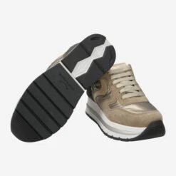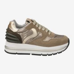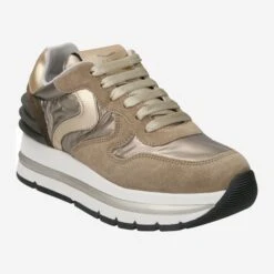 Matt gold, soft suede and numerous details transform MARAN into a luxury sneaker! The noble manufacturer Voile Blanche designs this lace-up shoe with an exciting mix of materials that gives you maximum flexibility. The platform sole perfectly underlines your street look. A special highlight are the 3D rubber applications in the heel area, which give this model a futuristic character!